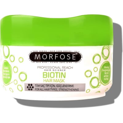 Morfose Biotin Hair Mask 500 ml həcmində olan maska saçların möhkəmləndirilməsi üçün nəzərdə tutulub. Bütün saç növləri üçün uyğundur. Tərkibində saç strukturunu möhkəmləndirən və onların böyüməsini stimullaşdıran biotin var. Bu maska intensiv qidalanma və nəmləndirmə təmin edir, saçları daha sağlam, güclü və parlaq edir. Saçlarınıza sağlamlıq və gözəllik bəxş etmək üçün bu maskanı sınayın.